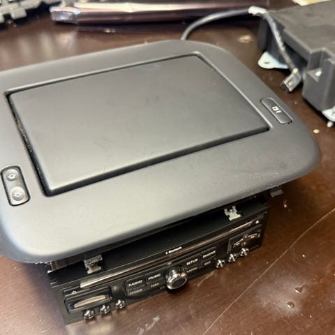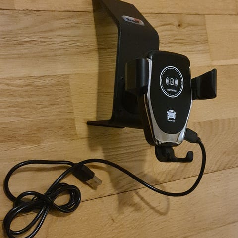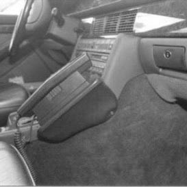 Eldre, men ubrukt spesialbrakett for plassering og fastmontering av mobilholder, DAB-adapter e.a. innenfor rekkevidde på dashbordet.
