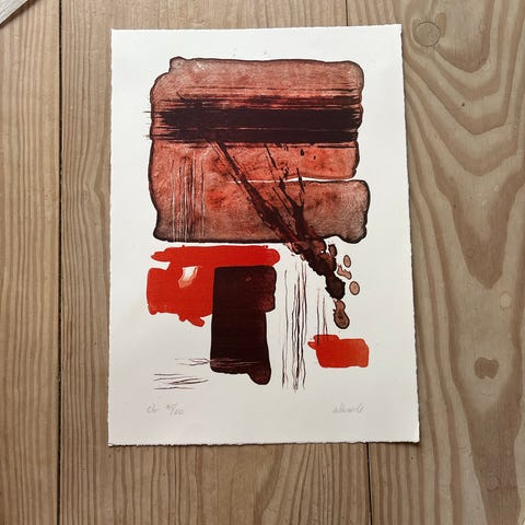 Trykk av kaj Stenvall. Donald i senga. 23 x 18 cm. Pen ramme og glass