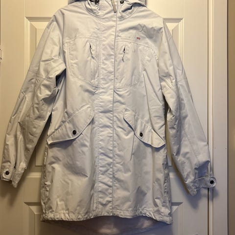 Lett vattert og vanntett jakke fra Kari Traa i str M. Brukt få ganger, og har ingen bruksmerker som jeg kan se. Beige, med søte detaljer flere plasser på jakka, se bilder. Super til høsten og milde vinterdager.