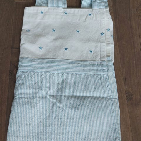 2 gardiner, til barn, blå med fargerikt mønster