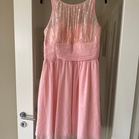 Pen ballkjole. Brukt maks en gang. Det står ikke størrelse i kjolen, men den er litt trang til meg. Jeg er 76 cm rundt midja og 89 cm rundt brystpartiet.