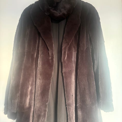 Ikke et massemarked. Sydd av designeren i ett eksemplar. Mykt, preget skinn med mønster. Veldig vakker, varm og lett.