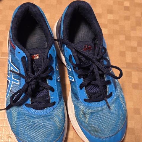 Asics kvalitets joggesko ca str 39,5 selges billig kun Kr 60, da de jo som man ser er godt brukt men ingen feil eller noe på de så mye bruk igjen for kr 50. Trengs sikkert en vask også. Mener de kostet ca Kr 1300 da de var nye. Kan sendes kjøper bet porto evt avtale overlev Oslo. Har vipps. Dyr og røykfritt hjem