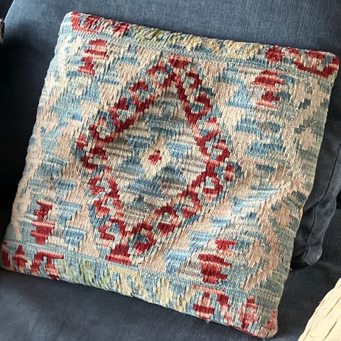 En superkoselig pute som er håndheklet i ull av bestemorsruter! Puten er vintage og gjør seg godt for å skape et hyggelig og hjemmekoselig interiør. Den er hel og pen og er god gjenbruk av tekstiler. Deilige farger på fremsiden og sort bakside! Puten måler ca 45x45 cm. Denne gjør seg supert til boligstyling for å lage et koselig og personlig preg.