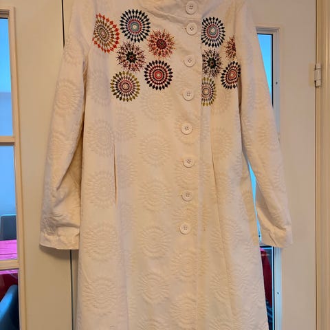 Ubetydelig brukt ullkåpe med «skinn detaljer» på armer, hals og lommer selges kr 300