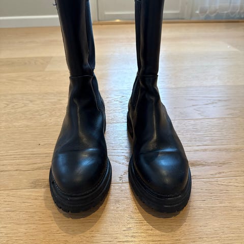 Brune/muldvarp høye støvletter i skinn fra Jean Paul selges. Rund tå/spiss.