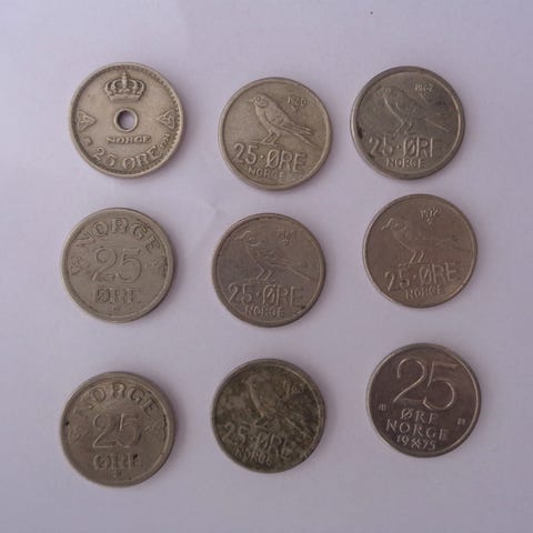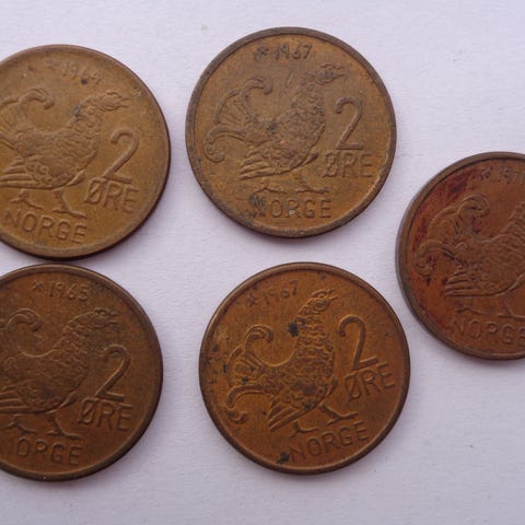 5 Øre 1942. 1951. 1962. 1965. 1967. 1968. 1971. 1972.