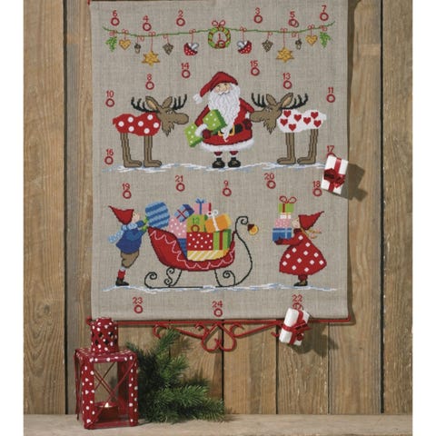 Broderipakke nr. 1497 fra Atelier Margarethes. Juleløper «Gårdsnissen». Design Marianne Wettergren. Mål 28*79 cm. Røyk- og dyrefritt. Åpnet kun for bilder. Selger Kr.600,-. Tar vipps. Sender + porto Norgespakke 140/PostNord 69.