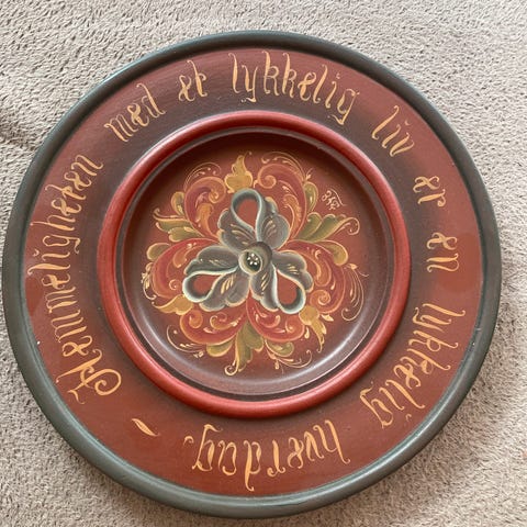 Nydelig rosemalt "tallerken ".passer perfekt til hytta. Se gjerne mine andre annonser.stort rydde salg