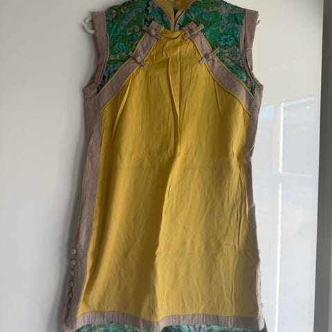Knallfin Sorbet kjole med V hals med strass pynt i halsen. Som ny.
