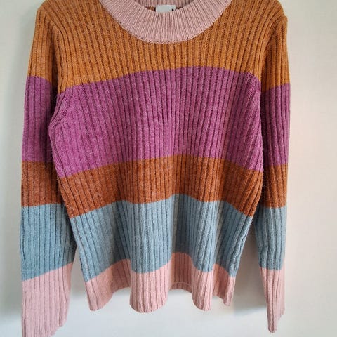 Myk genser i fine farger fra H&M. Lite og svært pent brukt. Laget av akryl og polyamid.