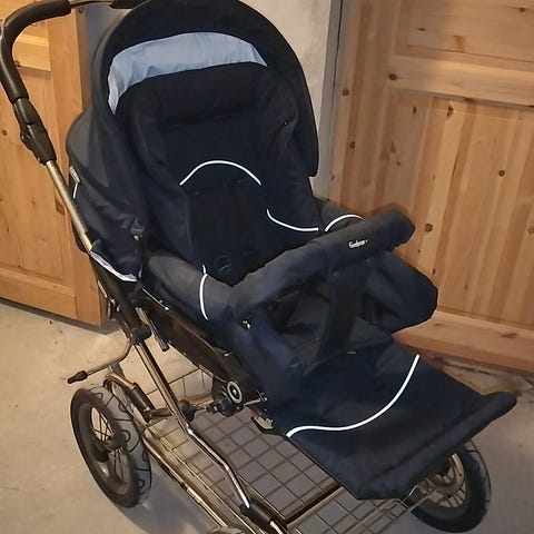 Dette er en vognpakke som holder hele småbarnsperioden. Selger vår vogn da lillemor er vokst ifra den. Vi har hatt den fra hun var født til nå. Følger med ekstrautstyr som vognvæeke, regntrekk, myggnetting.