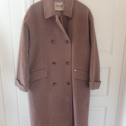 Kåpe med blomstrete fór. Ullblanding, myk og fluffy, Skråner litt inn nederst.
