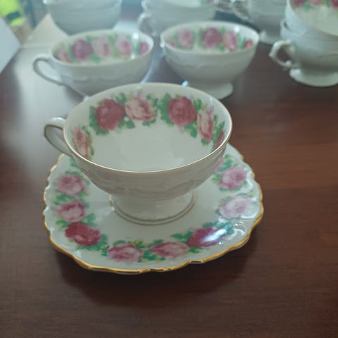 12 kaffekopper; H: 6 cm, 7,5 cm i diameter (topp) .
