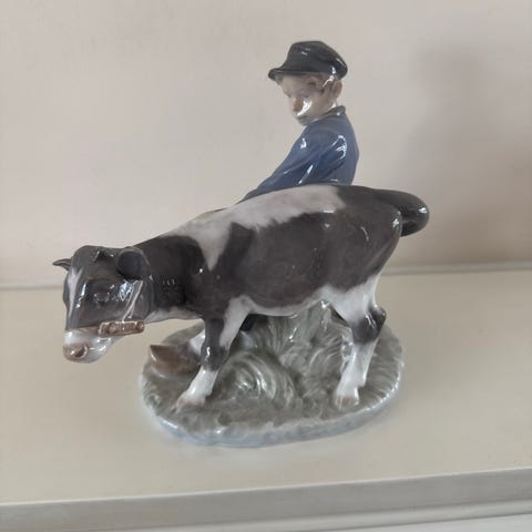 Flott figur av hund på jakt av A Santini. Figuren er noe slitt men i flott stand mtp på alder. Figuren er fra ca 1960. Signert