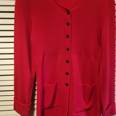 Kjempe flott one size cardigan/ pen jakker ( ull blanding material) dypt grønn farge og flott pels i krager som kan lett tar av/på. Cardigan/ jakker kjøpte jeg i Italia, men er dessverre for stor for meg som er kun på 150cm høy.
