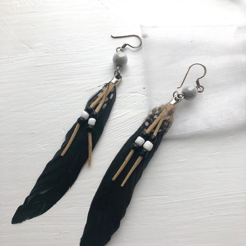 Øredobber i fjærdesign laget av stål og andre materialer. Disse unisex øredobbene har en unik fjærform som gir et stilfullt uttrykk. Perfekt for både hverdag og spesielle anledninger. Sender også som brevpost,
