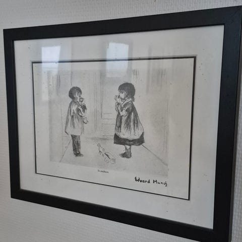Mål inkludert rammen 23.5 cm x 20.5 cm.