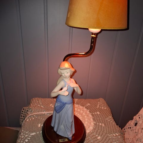 Kr 350. Vakkert malt lampefot. Ca 70 cm høy