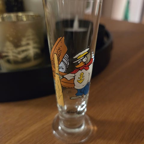 Originaltegning av Kjell Aukrust. Fremstilt av Stavangerflint. Kan benyttes til å spise av, samt henges på veggen. Tallerken.