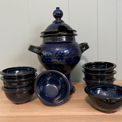 Det er småkrakelleringer på de og en har et lite nagg under. Dia 22 cm