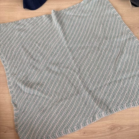 hjemmestrikket ull babyteppe blått