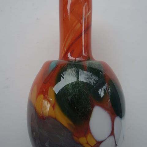 Et flott glasseple fra Gro Bergslien. Ikke signert. Flotte farger og skimmer. Noen mindre bruksspor på toppen i form av en ripe og noe ruglete (kanskje bare spill i glasset), ellers i svært pen stand.