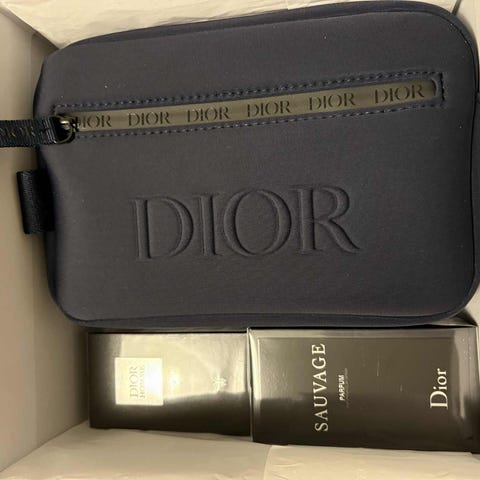Dior toalettmappe med gulldetaljer.Pent brukt.I velour.