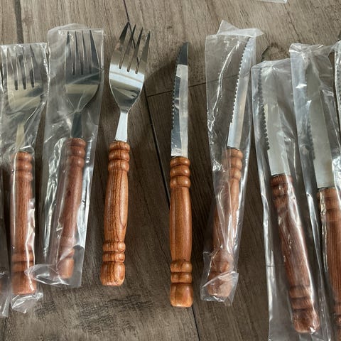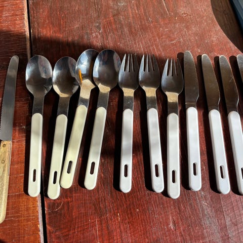 Bestikk med treskaft, til 24 personer, men kan deles opp. Kr. 10 pr. del.
