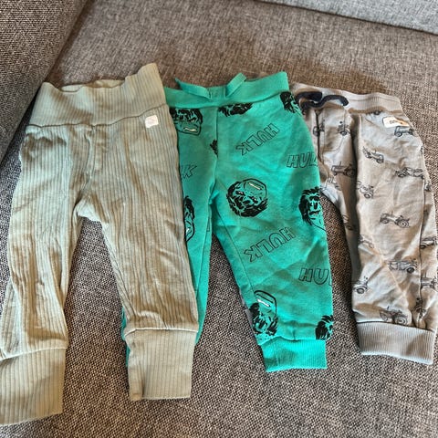 4 stk molo bukser selges samlet. Mønstret bukse str 68, ensfargede i str 62