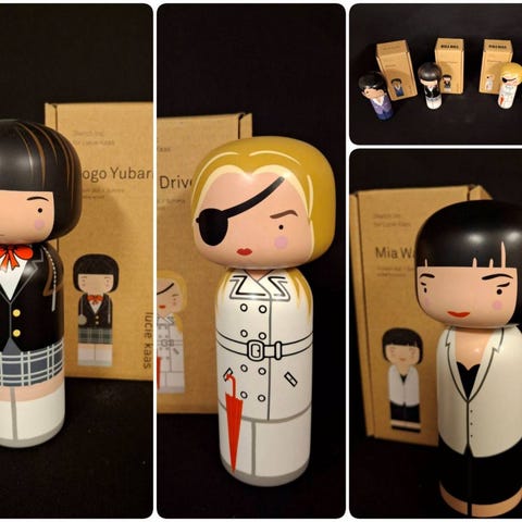 3 flotte Kokeshi dukker i tre selges samlet for kr 600,-, evt. kr 300,- for de laveste dukkene og kr 250,- for den høyeste dukken.
