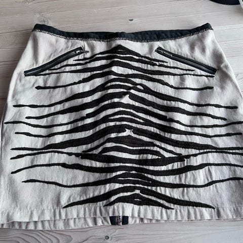 Vintage fra 90 taller, meget pent brukt par ganger skjørt CUSTO Barcelona med 2 glidelås foran . STR. 36. Made in Spain . L - 51 cm.Pris 1000 nkr.
