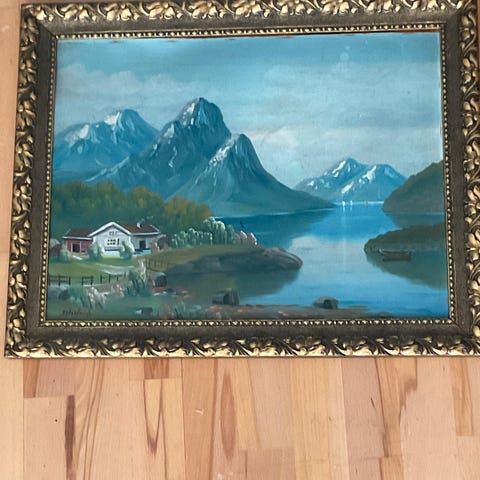 Flott stort oljemaleri , malt på lerret, signert med uten ramme.