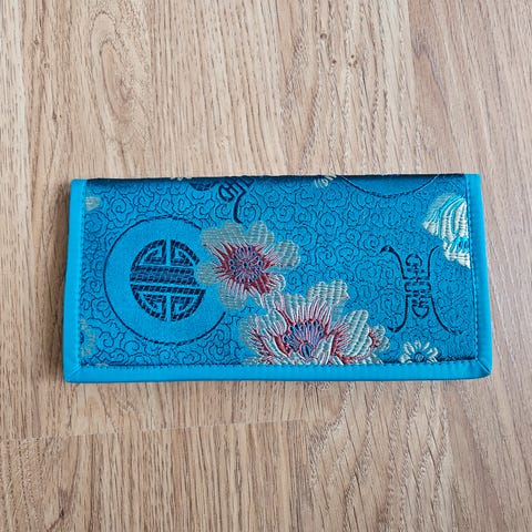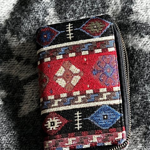 Brodert lommebok som jeg arvet men dessverre ikke får brukt. Pent brukt.