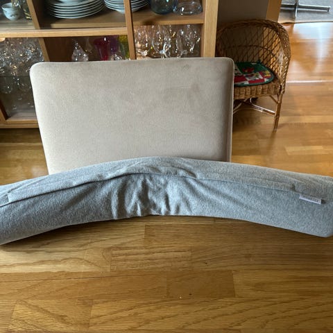 Med pose som kan varmes i mikrobølgeovn og puttes inn i varmer.