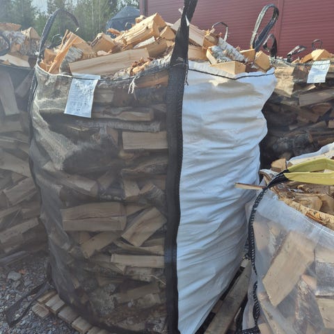 Ved. Bjørk. Gran å blandning hon ved i 1.5 m3 sekk. .