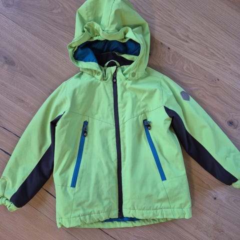 "Dun"jakke fra ColorKids. Veldig god om høst/vår og kalde sommerdager. Perfekt til ytterjakke når man sitter i bil da den er ganske tynn. Den er noe misfarget nederst på armene i tillegg til noe misfarget oppe ved kragen til tross for vasking. Glidelås funker som den skal. 2 lommer fremme.