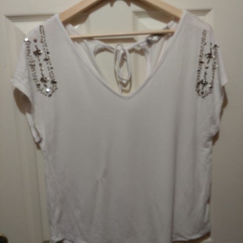 Selger pent brukt topp fra Ellos str 42/44, rundt hals er det paljetter
