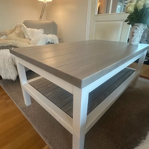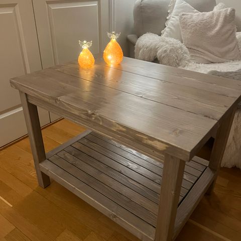 Nytt robust stuebord i farge hvit/drivved .Kan bestilles på ønsket mål.