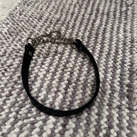 Total lengde på et halsbånd er 39cm. 10,5cm fra ytterkant til innerste hull og 4,5cm til ytterste hull