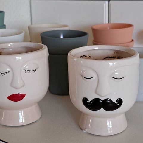Hånglaget Madonna blomsterpotte stor . Laget I betong . Størrelse 27 cm x 16 cm x 17 cm , vekt 3,8 kg . Vannbasert acrylic maling med silicone. Farge svart/ blå / hvit . Kan brukes inne og ute. Under taket skal holde seg lengre. Hånglaget på Trengereid.