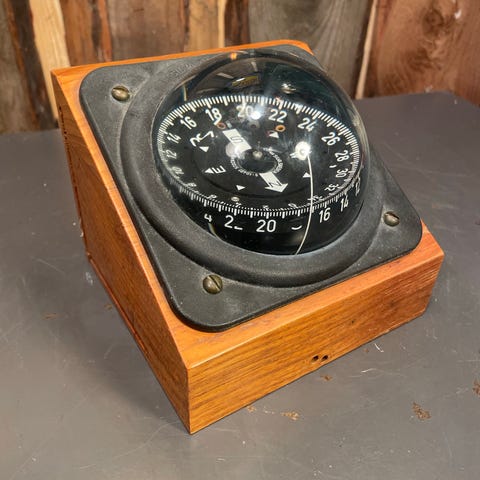 Originalt gammelt vintage Silva typ 41 båtkompass, kommer med original beslaget som skal skrus fast i båten, og er i originalkassen i fra det var nytt, svensk kvalitetskompass
