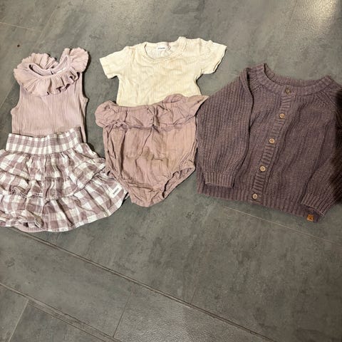 Body med shimmer fra Minymo og kortermet body og bukse fra Lil Atelier. Pent brukt uten hull og flekker, men litt nupper etter vask på settet fra Lil Atelier. Alt er i str 80. Selges samlet mot at kjøper betaler porto, og oppgitt pris er for hele pakken.