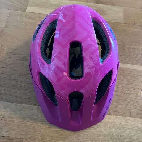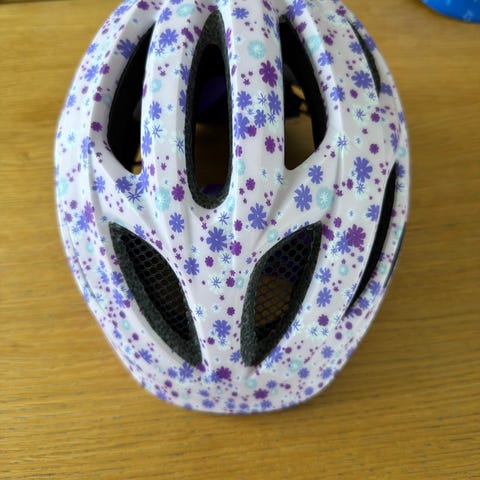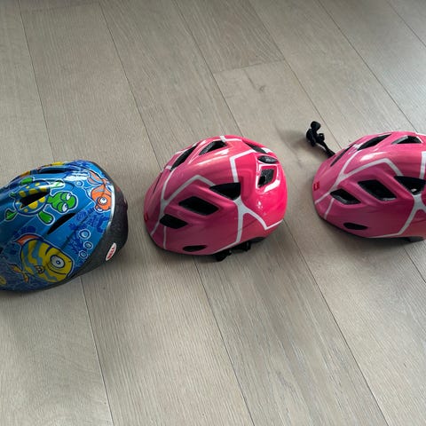 Sykkelhjelm til barn, rosa farge. Aldri hatt fall med hjelmen, pent behandlet og er i god stand. Sykkel falt aldri helt i smak 😅