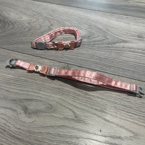 Alle halsbåndene er i samme rosa farge💕, men bjelle og låsen er i ulik farge, se bilde nøye.