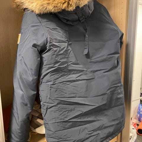 Fine farger, skjult hette i kragen, innelomme 2 glidelåslommer.