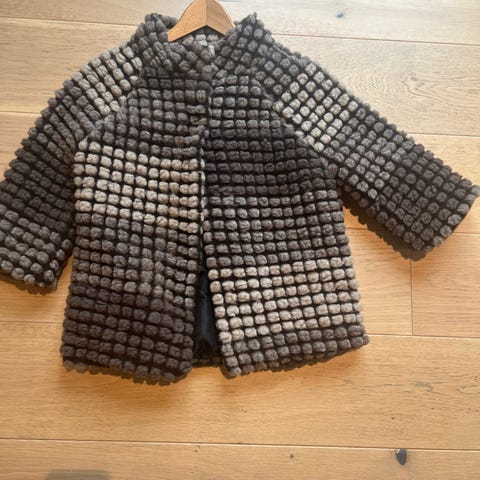 Ulljakke i str 16, men jeg er small og passer fint - merket roxy, kjøpt i London - litt nupper som enkelt tas bort - ullmix