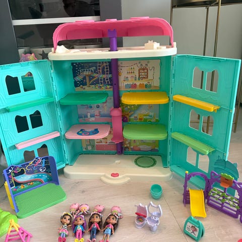 Ulike Vintage Fisher Price Sweet Street bygninger med diverse tilbehør.