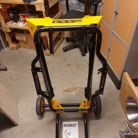 Pent brukt Bosch professional GCM 10 kapp- og gjærsag på kjekt stativ med hjul leies ut.