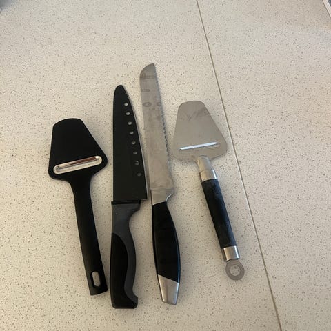 Kjøkkenredskaper - brødkniv og ostehøvel